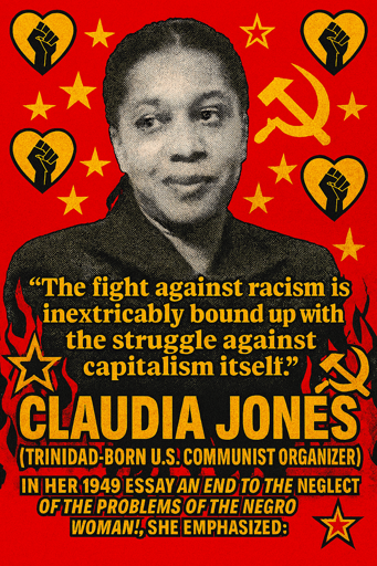 arrow-up11arrow-down1image“The fight against racism is inextricably bound up with the struggle against capitalism itself.” - Claudia Jones (Trinidad-born U.S. Communist organizer)lemmy.mlSpectre@lemmy.ml to Black Comrades@lemmygrad.ml · 17 days agomessage-square0fedilinkcross-posted to: latestagecapitalism@lemmy.world