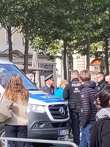 Heute hat die AfD in Dresden auf dem Neumarkt eine Veranstaltung durchgeführt und zu Beginn ist ein Mann mit SS-Uniform aufgetaucht und innerhalb von wenigen Sekunden wurde er von den Polizist*innen abgeführt/vom Versammlungsort entfernt.